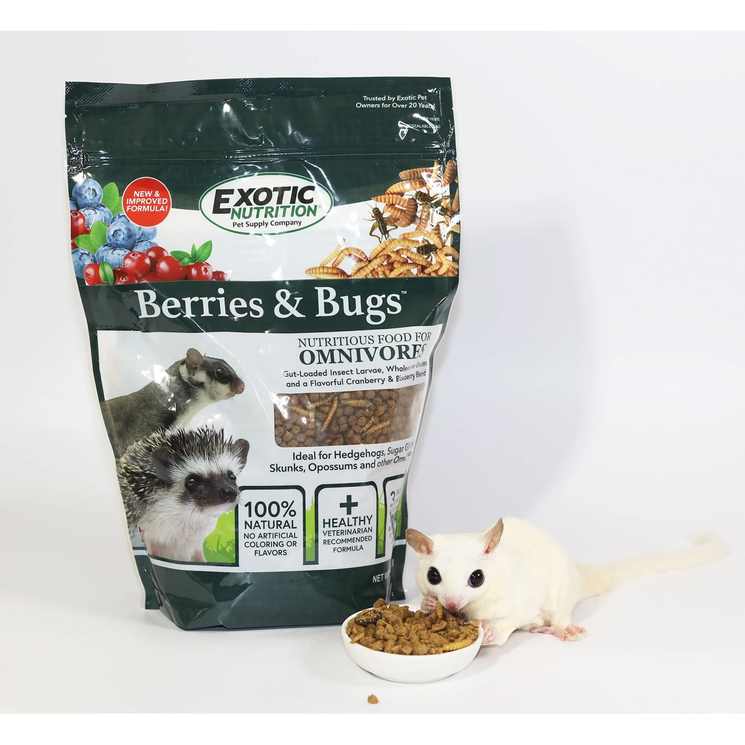 Berries & Bugs is a nutritious food for insectivores that contains gut loaded insect larva, grains and berries. This diet is formulated specifically for insectivorous mammals such as sugar gliders, hedgehogs, skunks, opossums as well as some bird species.