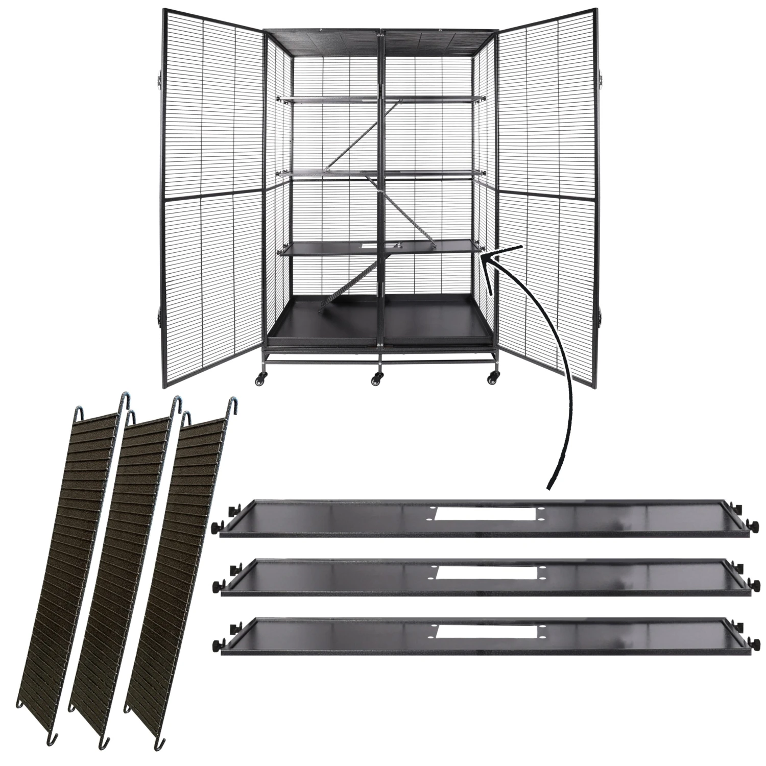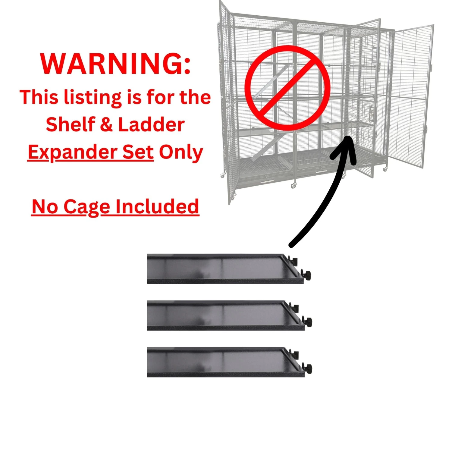 These shelf sets are only compatible with the Borneo Cage Version II. The Borneo Shelf & Ladder Kit includes three heavy-duty solid metal shelves and ladders that attach to your pet’s Borneo Cage. See options below:
