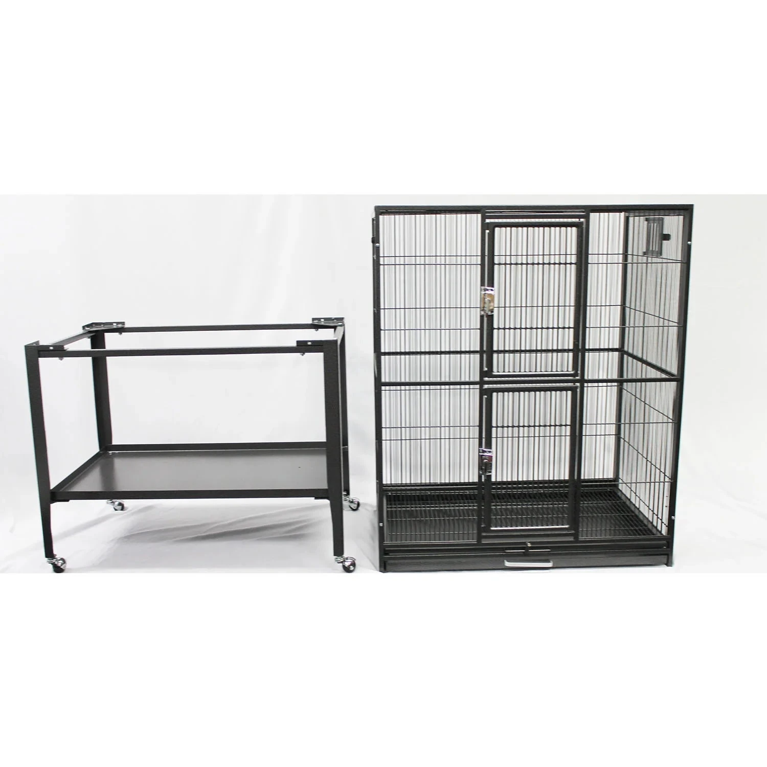 The Exotic Nutrition Brisbane Cage is manufactured with quality materials and experienced workmanship by the world-renowned HQ Cage Company. Constructed from wrought-iron, this cage stands out as one of the toughest options available with a stunning hammer tone powder coat for long-lasting protection against rust. It boasts dimensions of 32 inches wide by 22 inches deep by 63 ½ inches tall (36 inches tall off the stand) and provides a spacious interior of 15.8 ft ³.