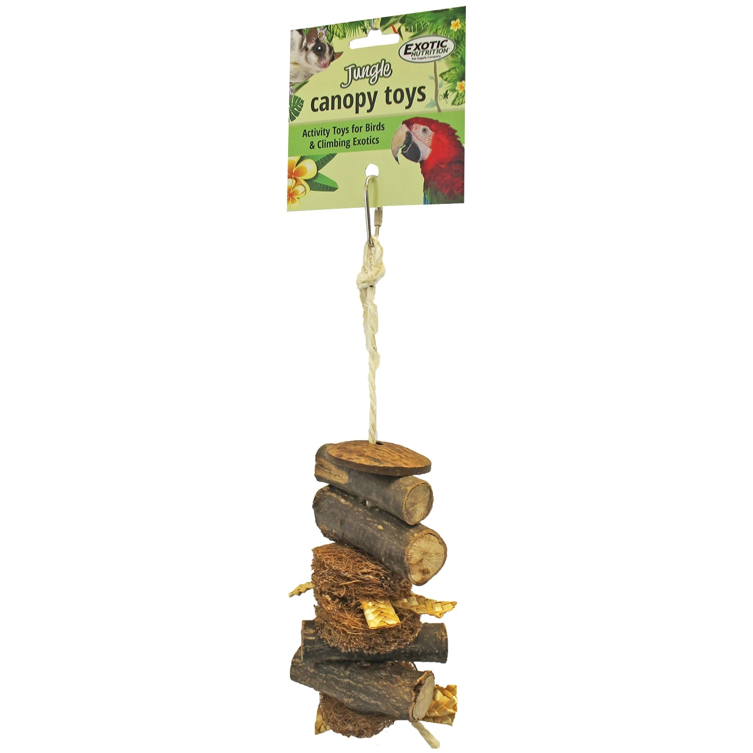 Exotic Nutrition’s Chew Stack offers pets endless fun while providing a good way to ease stress and prevent boredom. This Jungle Canopy Toy’s unique design is sure to keep your pet happy and healthy while interacting with the different wooden blocks, cylinders and cubes.