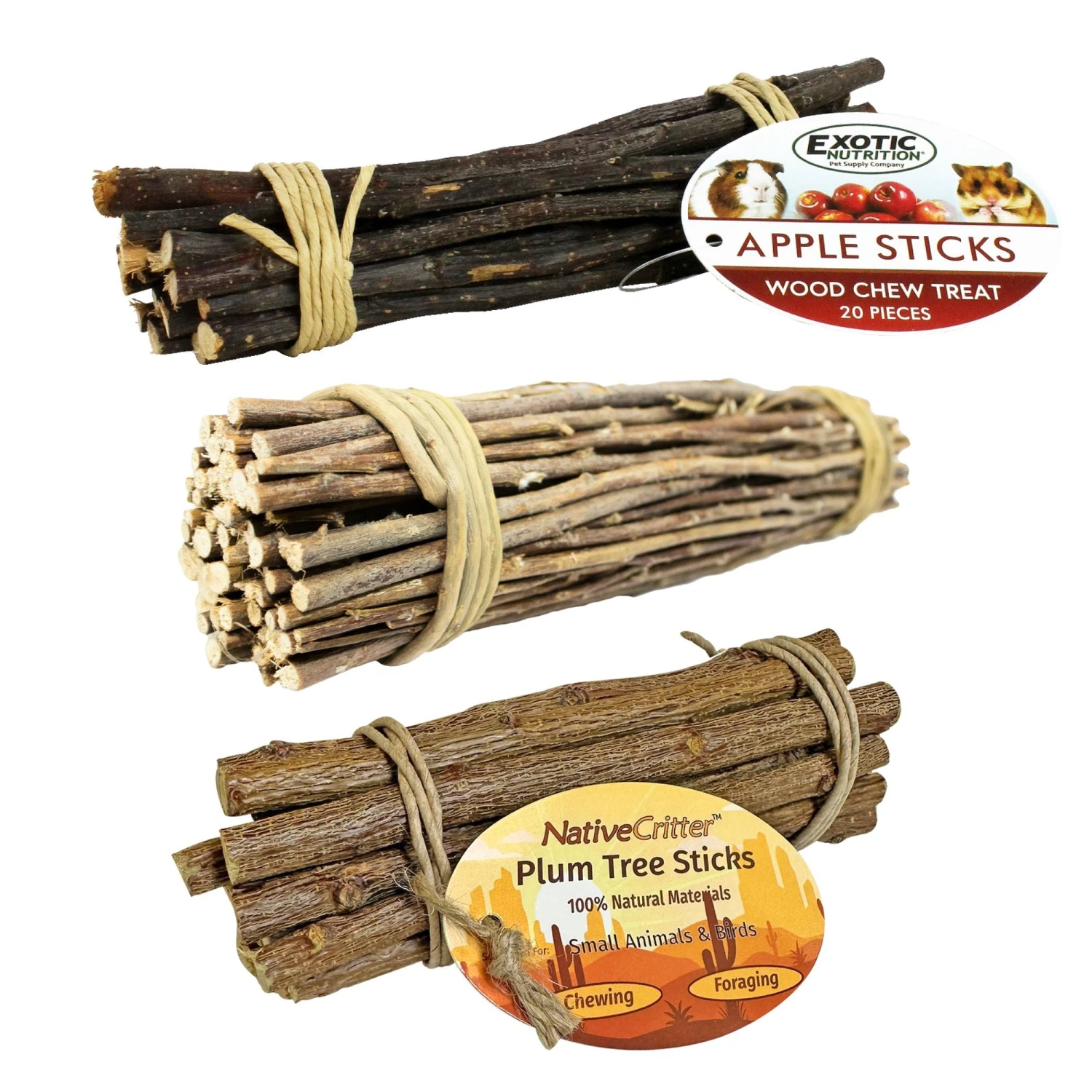 Exotic Nutrition’s Chew Stick Value Pack, a premium assortment designed to delight your small pets! Packed with Apple Sticks, Plum Tree Sticks, and a Willow Bundle, this value pack offers a variety of textures and flavors to keep your furry friends happily nibbling. Crafted from natural ingredients, these chew sticks not only promote dental health but also provide mental stimulation, preventing boredom and encouraging physical activity. It is the ultimate combination of taste and nutrition!