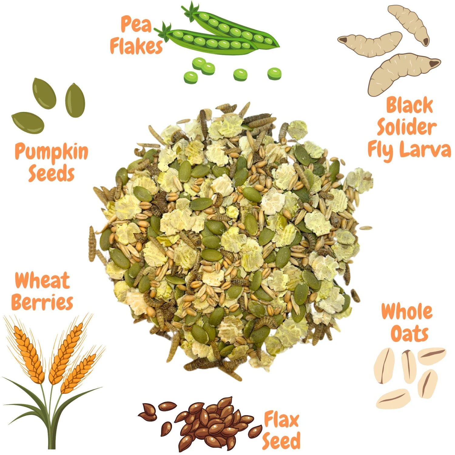 The Chicken Treat 3-Pack contains: Chicken Ecstasy 10 oz. bag, Dried Crickets 8 oz. bag, and Flock-Yeah 10 oz. bag.