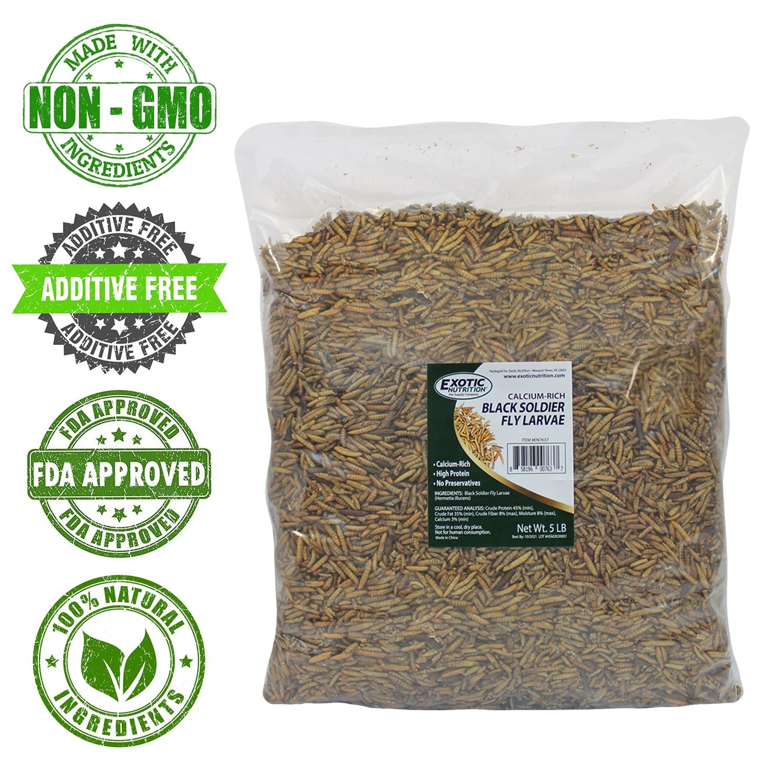 INGREDIENTS: Dried Black Soldier Fly Larvae (Hermetia illucens)