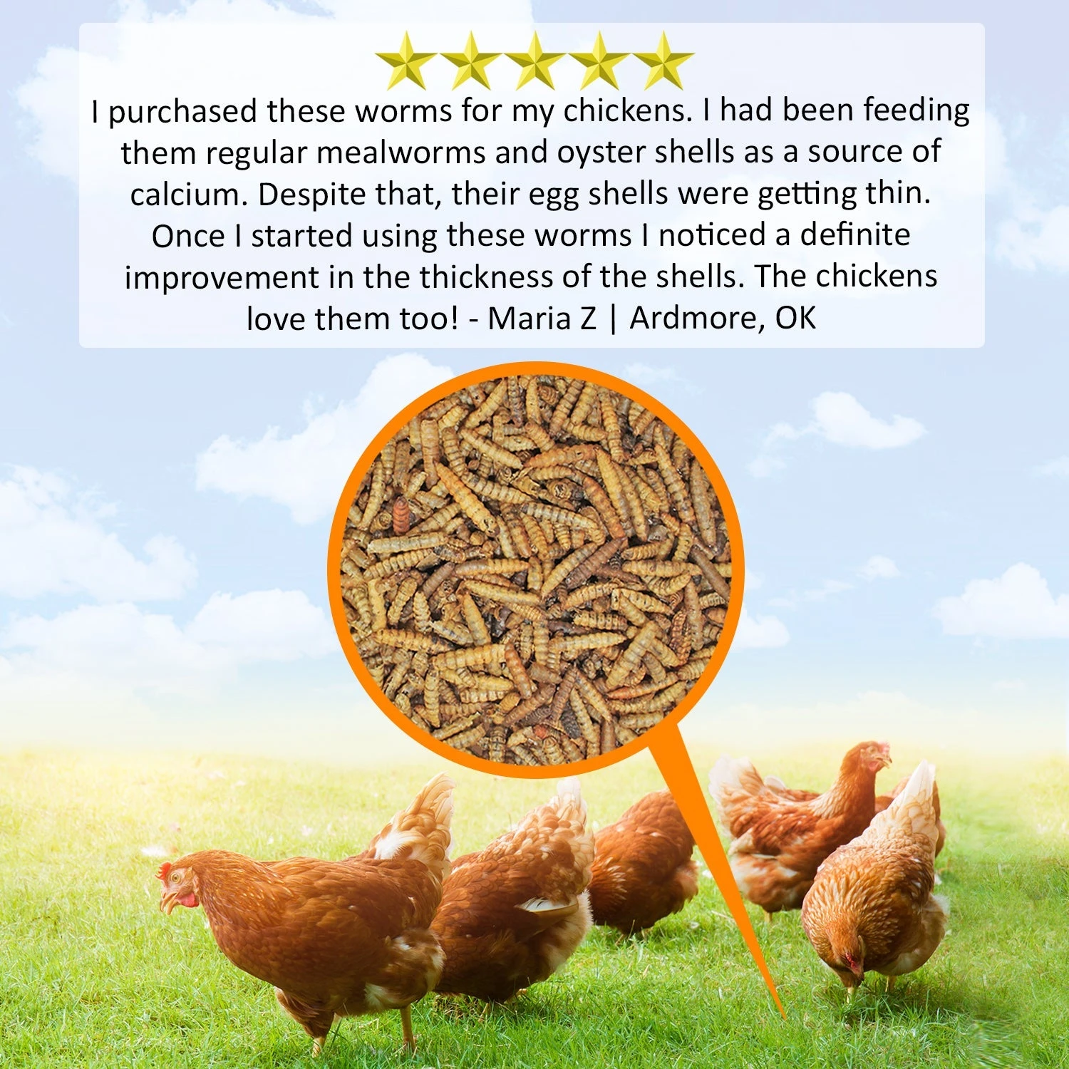 - Natural source of protein to provide energy and calcium to to support egg development in laying hens