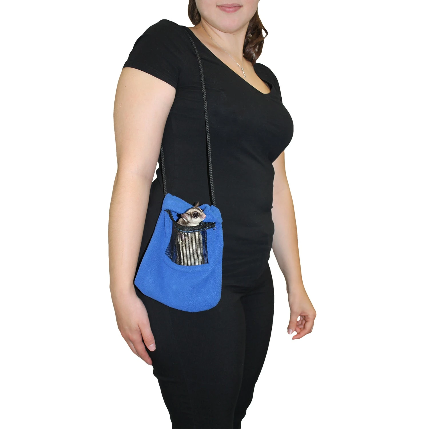 Exotic Nutrition’s Economy Carry Pouch can hang inside the cage or clip directly onto the adjustable carry strap. Made with soft polar fleece material, this provides a comfortable and convenient way for pets to bond with their owner all day while out of the cage! Ideal for sugar gliders, squirrels, marmosets, and other nesting animals. See our Hangouts accessories for double-layered polar fleece pouches with pet-safe hidden seams.