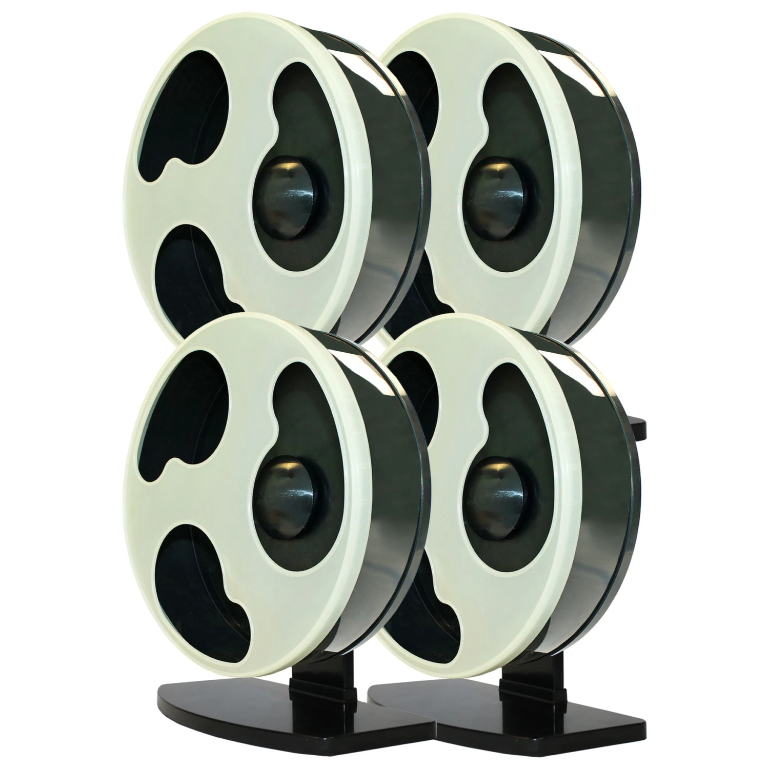 Measures: 12″ wheel diameter, 3.5″ wide black track, 4″ diameter openings, 13.5″ tall on stand. Accessories sold separately.