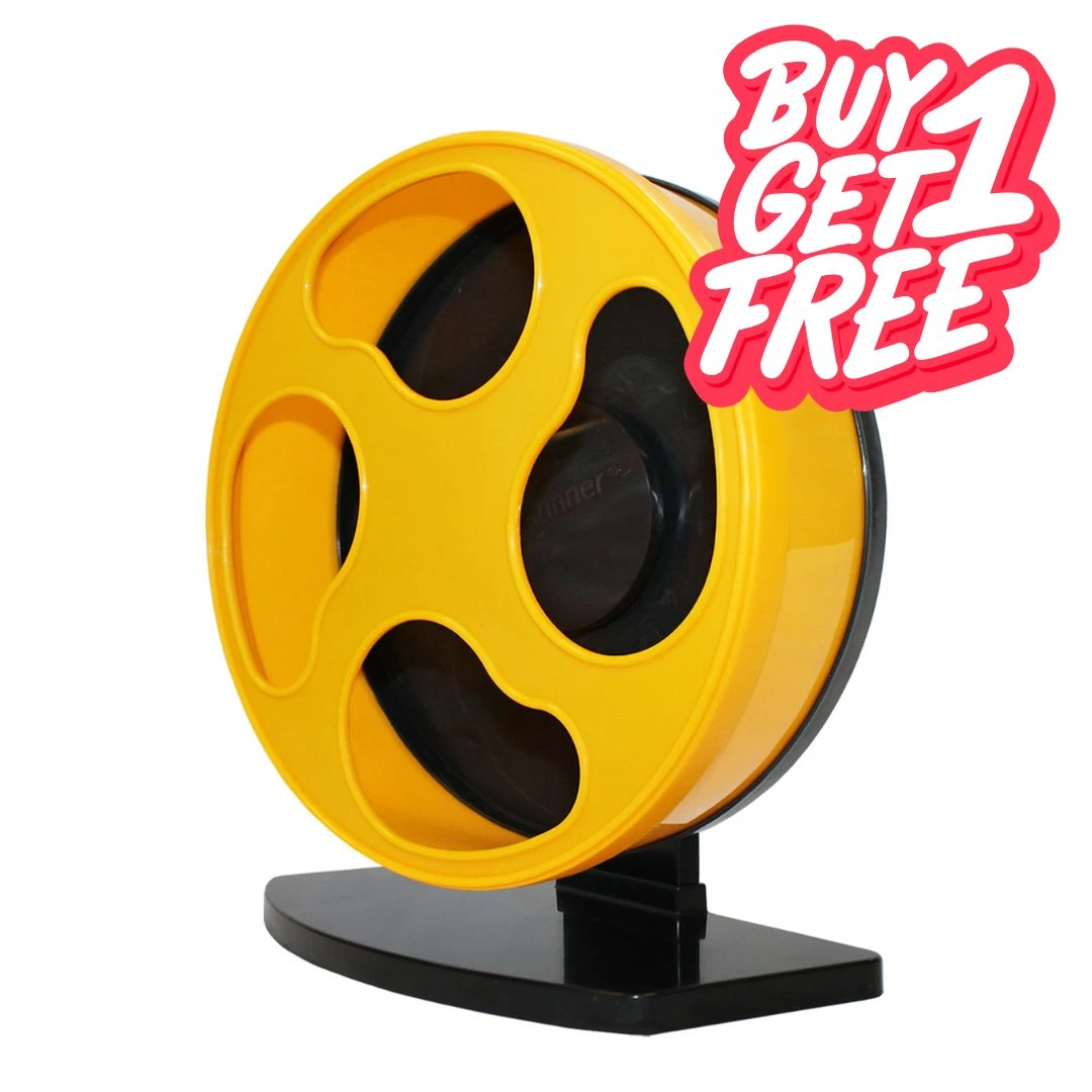 Looking for a safe, quiet, and durable exercise wheel for your furry friends? Look no further than Exotic Nutrition’s Silent Runner Wheel 9″. This innovative wheel is specifically designed for hamsters (robo, teddy bear, dwarf), mice and similar-sized animals. The dual-ball bearing technology ensures a smooth, quiet spin, so you can enjoy peace and quiet while your pets exercise. Unlike other wheels, there’s no axle, which means there’s no risk of fur or tail entanglement, heavy duty stand is included. Plus, the textured running tracks provide excellent grip for your pets. The wheel completely disassembles for easy cleaning, making it a breeze to maintain. And with bean-shaped openings and a solid black rear wall, this wheel is pet-preferred. Trust in the Silent Runner Wheel 9″ for a safe spin every time.